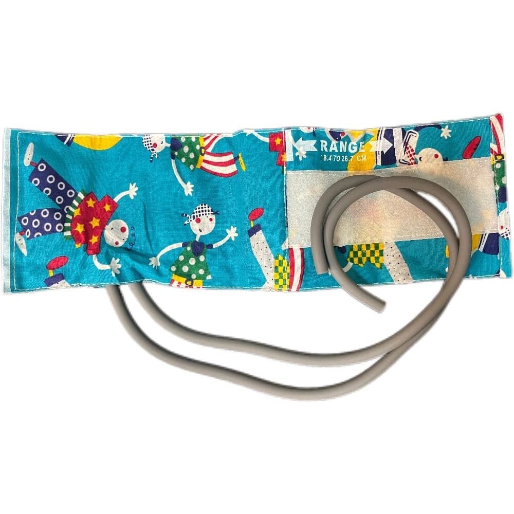 بستن دستگاه فشارسنج: دستگاه رو با دقت دور بازوی کودک بپیچید، به طوری که کاف به درستی قرار بگیرد و دستگاه آماده برای هوا دهی باشد.